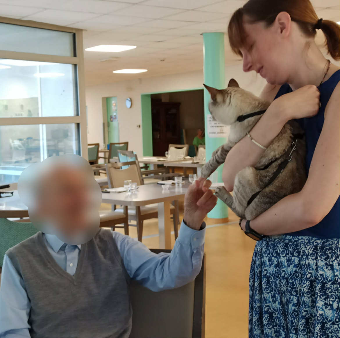 J’ai choisi de travailler avec le chat. Le chat étant un animal sensible aux bruits et aux mouvements, étant indépendant et très réceptif à son environnement, j’ai choisi de limiter les séances à 4 personnes maximum. Ce cadre réduit permet de respecter son rythme, de préserver sa sérénité, et de garantir des interactions de qualité, aussi bien pour lui que pour les participants. Le bien-être de l’animal est une condition essentielle à la justesse de chaque rencontre.